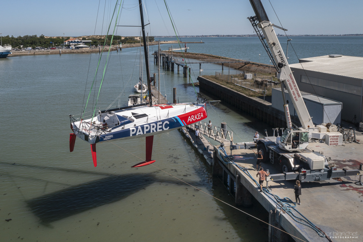 Après avoir mis à l’eau son nouveau Class40, à l’issue d’un travail intense réalisé en synergie entre l’équipe Paprec Arkéa, le cabinet Lombard et le chantier Lalou Multi, c’est donc l’heure de la prise en main et des premiers bords.