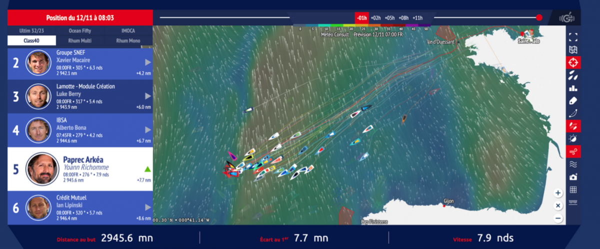 Yoann Richomme a retrouvé ses habits de combattant du large et cette capacité à se donner sans compter. Une nouvelle fois hier, il s’est évertué à grappiller des places dans le groupe de tête des Class40. La ‘remontada’ a continué toute la journée : 14e à 7 heures du matin, 12e à 14 heures avant de s’ouvrir les portes du ‘top 10’. Il pointait à la 7e place à 19 heures et était 5e ce samedi matin à 8 heures….