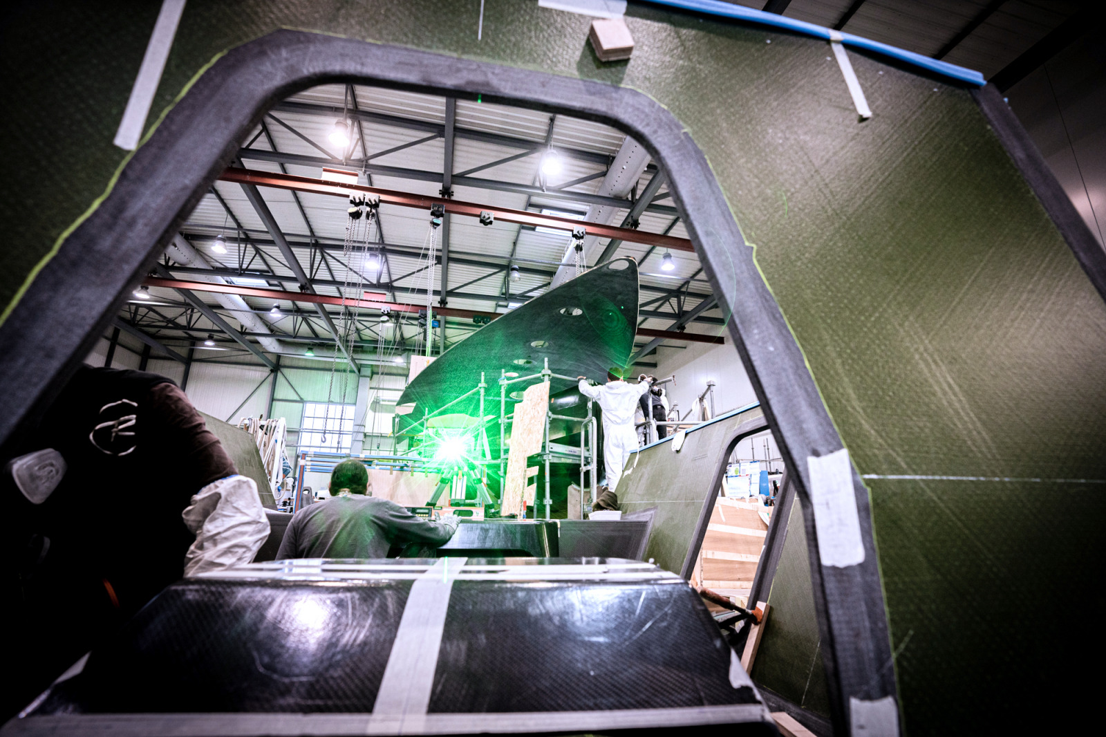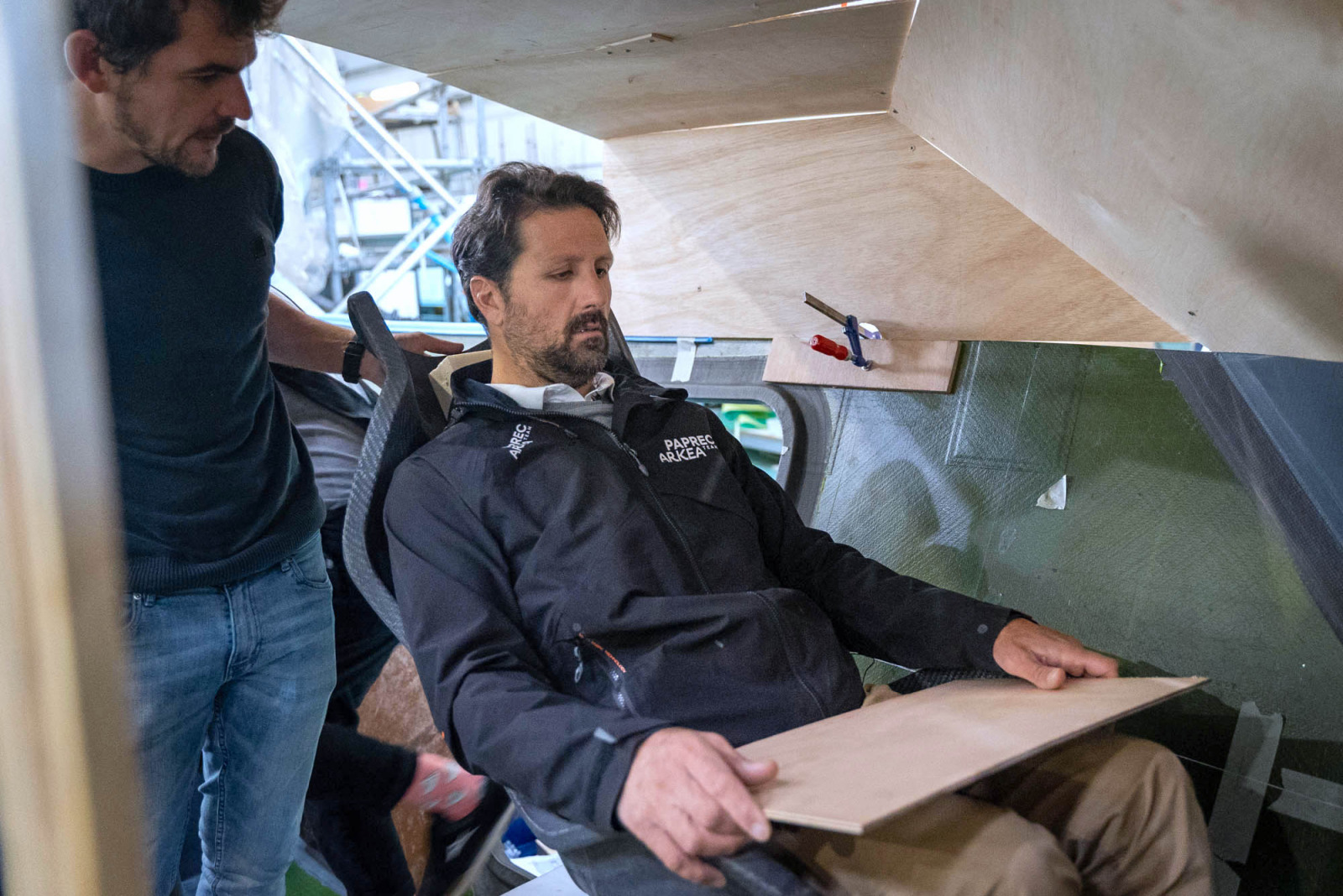 C’est une autre course, plus discrète et pourtant toute aussi audacieuse. Alors que Yoann Richomme traversait l’Atlantique et affolait les compteurs en Class40, sur la terre ferme, l’équipe de Paprec Arkéa s’activait. Un monocoque filait donc vers la victoire quand un autre, un IMOCA aux mêmes couleurs, s’apprête à prendre forme. L’assemblage de cette fusée, un 60 pieds flambant neuf prêt à affronter les océans, entre en effet dans sa dernière phase dans le chantier Multiplast de Vannes.