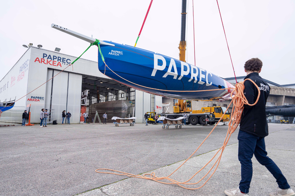 L’IMOCA Paprec Arkéa (plan des architectes Antoine Koch et Finot-Conq) construit pour le Vendée Globe 2024, se révèle aujourd'hui (24 janvier 2023) pour la toute première fois. Le fruit d’un travail particulièrement conséquent réalisé par les équipes du team et de Multiplast. « C’est l’aboutissement de 20 mois de projet donc 16 mois de construction, nous sommes hyper fiers de notre bateau, » se réjouit son skipper, Yoann Richomme.