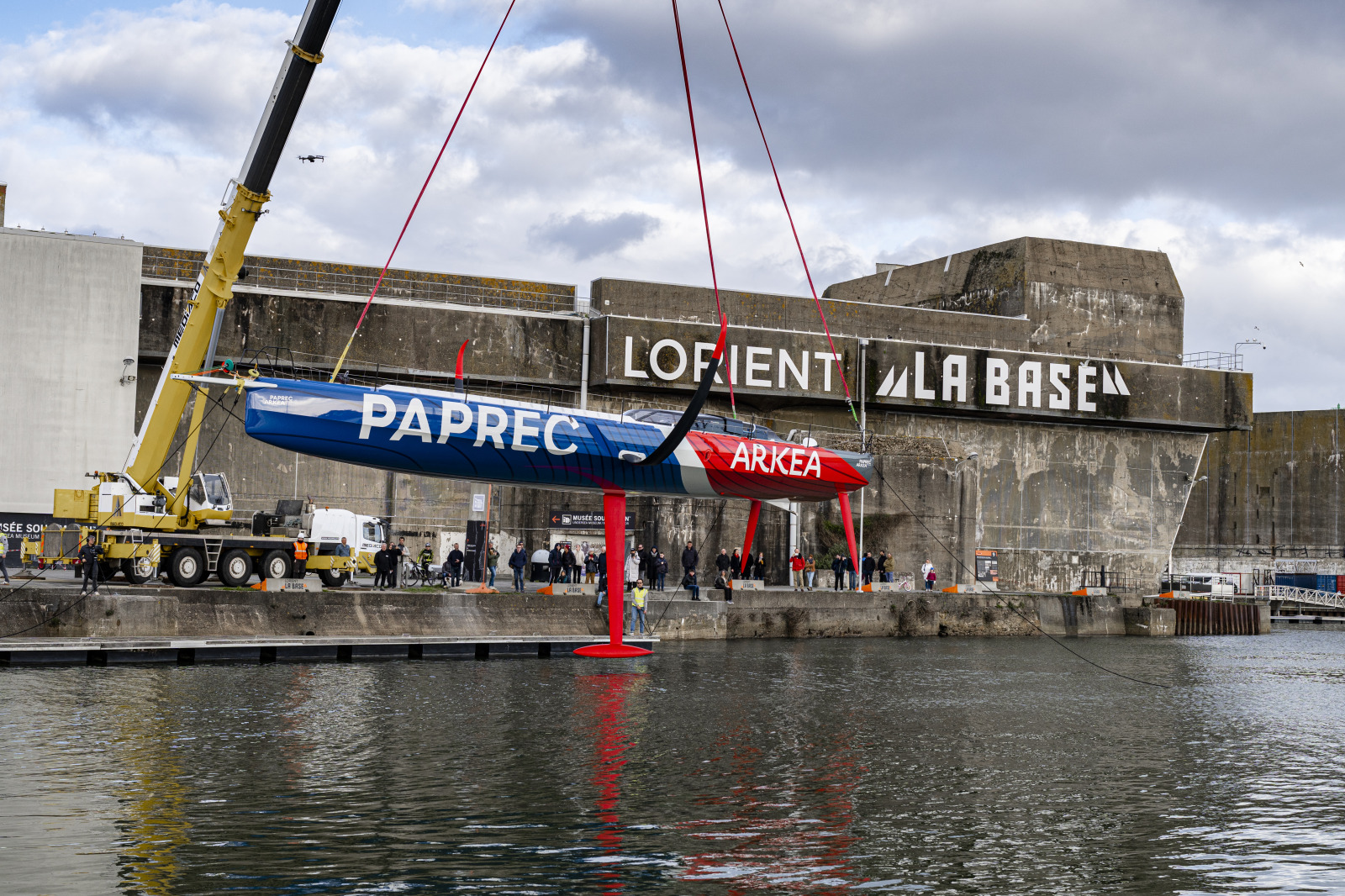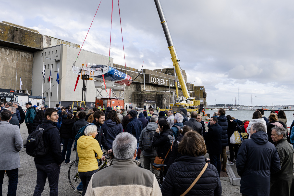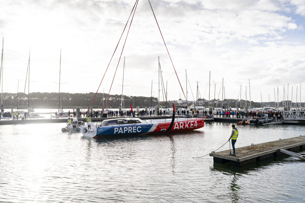 L’instant est chargé en symboles, de ceux qui fédèrent et qui se vivent en pleine lumière avant de goûter aux joies de l’océan et des émotions qui vont avec. Ce mercredi 22 février a eu lieu la mise à l’eau de l’IMOCA Paprec Arkéa, l’aboutissement d’un projet de 20 mois dont 16 de chantier. Sous les yeux de Yoann Richomme, des représentants et collaborateurs de Paprec et d’Arkéa, de l’équipe technique, des architectes Antoine Koch et le cabinet Finot-Conq, des sous-traitants de la filière maritime ayant œuvrés sur le bateau, c’est le fruit d’un travail intense qui s’est révélé à tous !