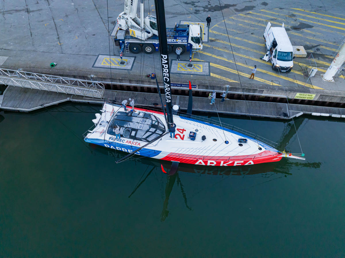 À l’heure de cette mise à l’eau, Yoann mesure aussi le chemin parcouru, la « complexité de monter un tel projet ». C’est la troisième fois qu’il met à l’eau un bateau neuf mais c’est la toute première en IMOCA. Avec toute l’équipe, le bureau d’études, l’architecte Antoine Koch et le cabinet Finot-Conq, le chantier Multiplast et les dizaines de prestataires impliqués, le challenge a été plus collectif que jamais. « Les phases de conception et de construction ont été passionnantes, apprécie le skipper. Pouvoir tirer des bords avec ce tout nouvel IMOCA, ça va être dingue et magique ! » Un enthousiasme lié également au soutien sans faille de Paprec et d’Arkéa dans l’aventure.