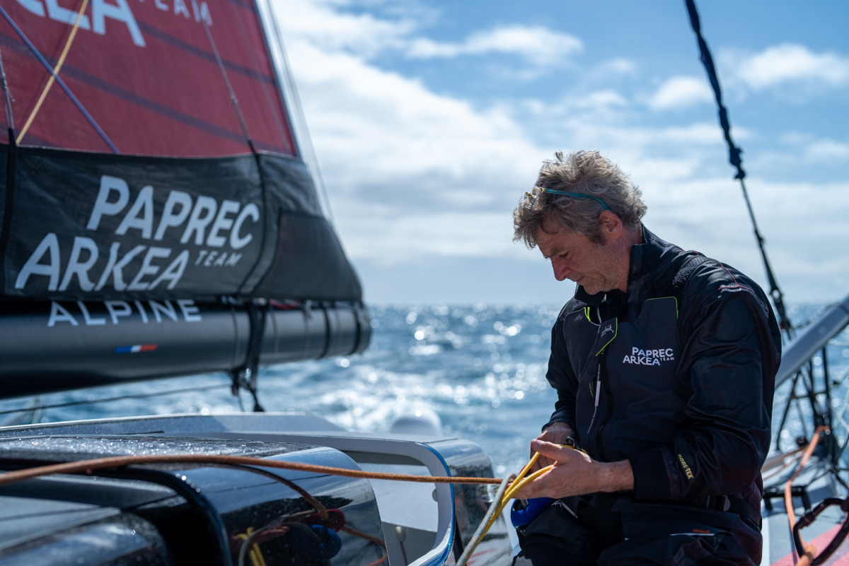 Il y a les belles images, l’avancée fluide du bateau sur l’eau, l’impression d’être sur un tapis volant et puis il y a d’autres conditions. Celles qui sont « plus sauvages » où la mer est plus formée et le vent plus fort. Celles où « ça tape beaucoup en mettant à rude épreuve les hommes et le matériel » dixit Yann Eliès. Ce sont ces conditions qu’a vécu le duo de Paprec Arkéa en cette nuit de mercredi à jeudi, la quatrième depuis le début de la course.