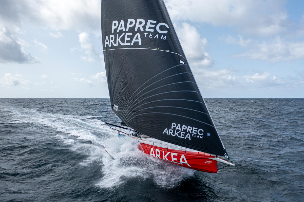 Fidèle à leur capacité à ne jamais rien lâcher, les deux skippers se sont accrochés lors des dernières 24 heures de course. Tout au long de la journée de jeudi, Paprec Arkéa a ainsi regagné de la vitesse. Le monocoque est passé de 15 nœuds en début de matinée à une moyenne autour de 18 à 23 nœuds, dans un long bord les menant jusqu’à la pointe bretonne.