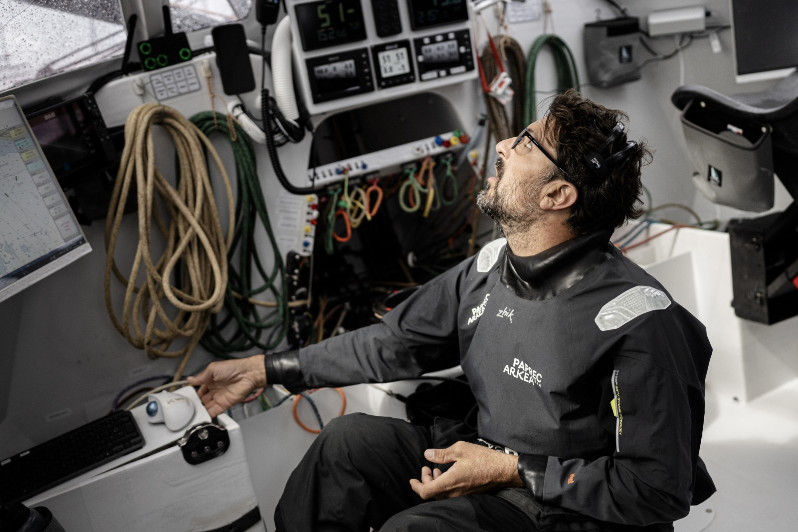 Et le skipper de détailler le programme qui les a monopolisés toute la journée. « Mercredi matin, on a dû passer le front comme prévu. Le vent a tourné très rapidement, on a dû faire une grosse manœuvre. Après, ça a bombardé toute la journée ». La vitesse – plus de 23 nœuds de moyenne au cœur de la journée – et l’état de la mer obligeaient donc à redoubler d’attention. « C’était assez violent. Parfois, on essayait de calmer le bateau pour éviter le risque de casser ».