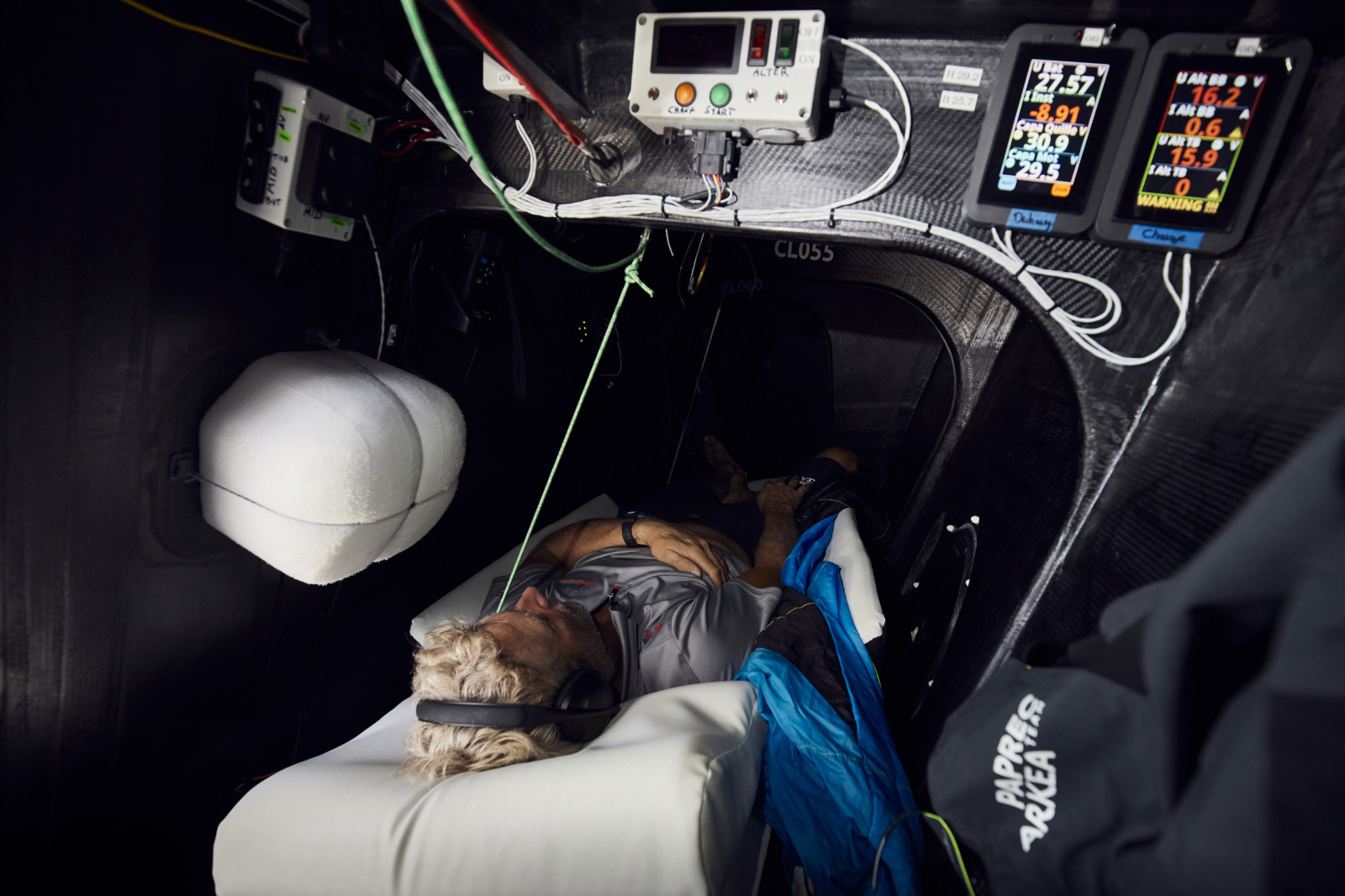 Par ailleurs, les regards étaient rivés sur les fichiers météos afin de déterminer la bonne route à emprunter. « Finalement, tout le monde a opté pour aller dans le sud, décrypte Yoann. On oublie que les conditions de mer sont épouvantables et c’est vraiment délicat pour les bateaux. C’est plus raisonnable de faire cap au sud ». La décision s’est faite dans la matinée. En fin de journée, une légère accalmie a permis de se reposer, enfin, et de faire le tour du bateau pour vérifier que tout était en ordre. « On arrive à se reposer même si nos deux bannettes se sont cassées… Le matelas sur-mesure fait par Bultex fonctionne bien ! »