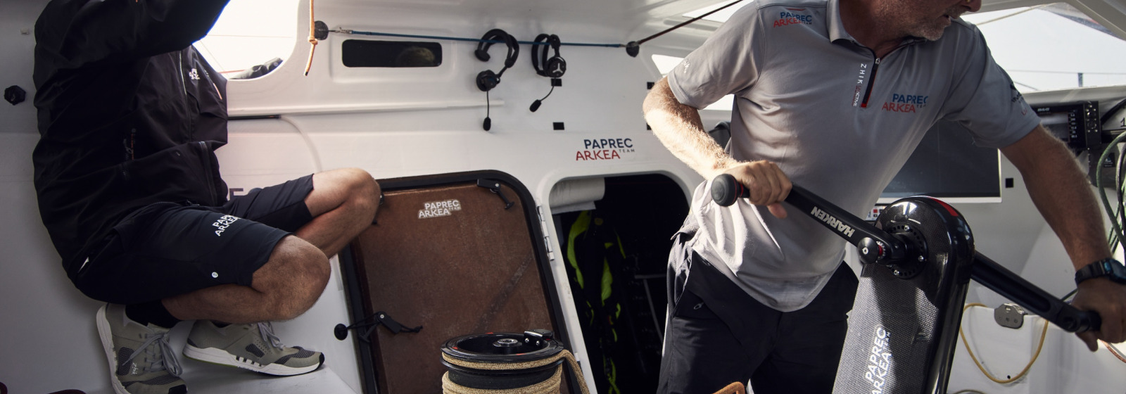 Si le moral est au beau fixe à bord de Paprec Arkéa, il convient une légère mise en contexte… Et de ne pas trop se fier à la cartographie. Certes, le duo navigue autour de la 10ème position – il pointait au 8ème rang ce lundi matin à 7 heures - mais cela ne reflète pas les forces en présence. En effet, samedi matin, alors que le trio de tête – Charal, For People, Paprec Arkéa – filait vers le Sud et impulsait le rythme, deux foilers (Teamwork et Groupe Dubreuil) ont décidé de prendre une route Ouest. Étant plus près géographiquement de l’arrivée, ils ont pris la tête du classement provisoire.