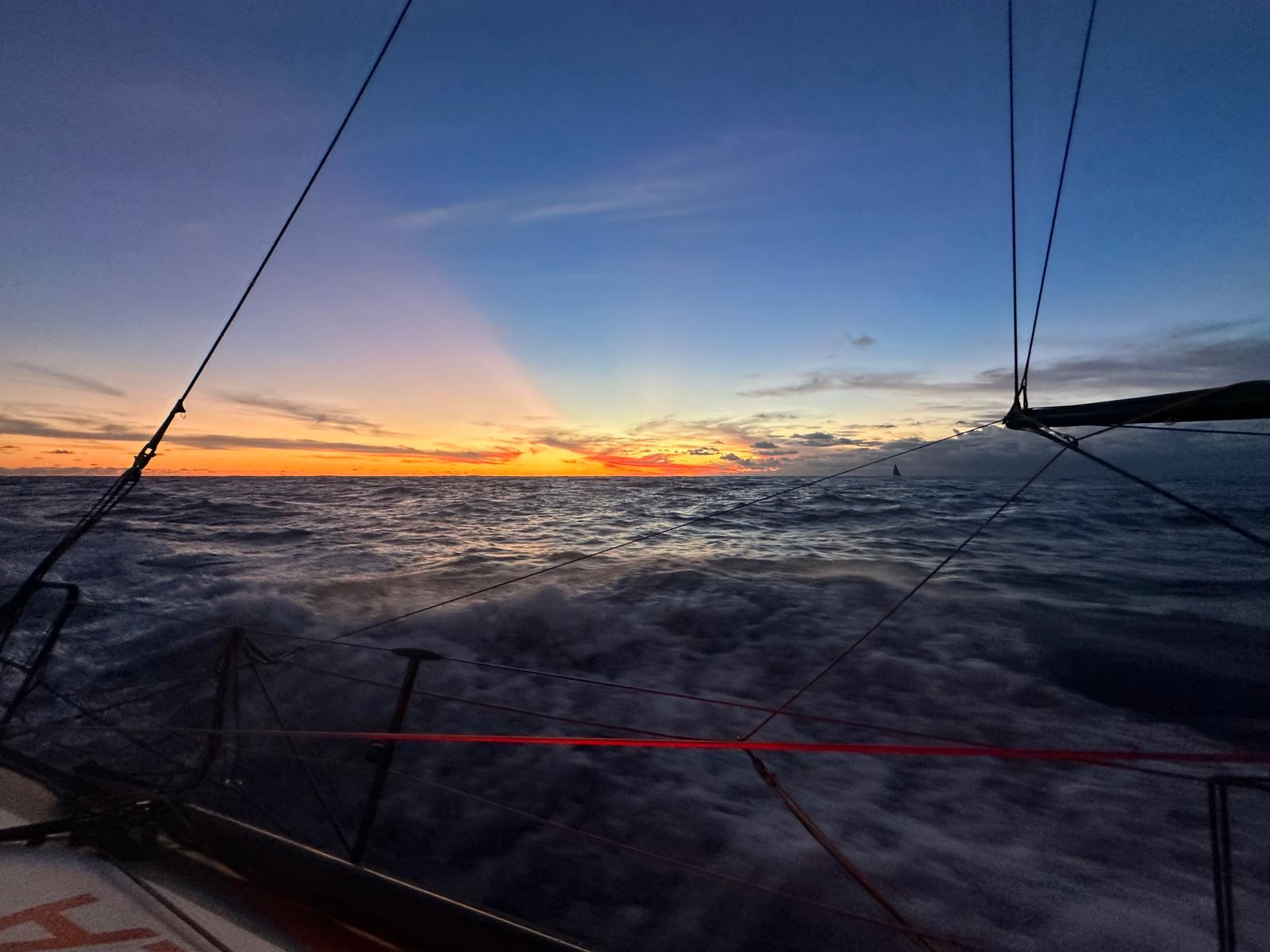 Depuis, Yoann s’est lancé dans une folle remontée vers le Nord, tutoyant les 20 nœuds de moyenne jusqu’au milieu de journée. « Ça tapait beaucoup, l’avant se soulève et retape violemment dans les vagues, confie-t-il. J’essaie vraiment de veiller sur mon bateau ». Préserver la machine est une de ses missions, préserver le skipper en est une autre. Car les temps de sommeil ont été rares en début de course, un peu plus nombreux depuis qu’il a mis le cap vers le Nord.