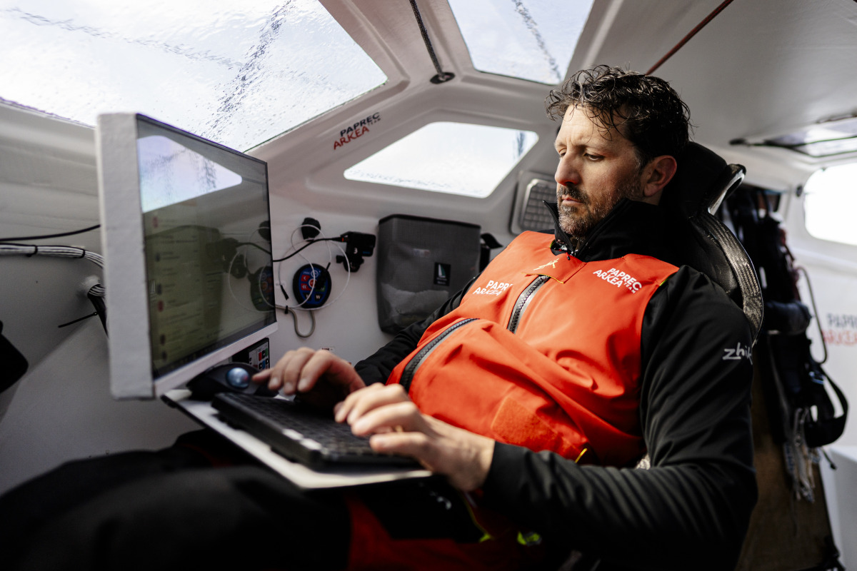 Cette 2ème nuit a eu valeur de transition : en sortant de la dépression, Paprec Arkéa a mis le cap vers l’Ouest. « On va avoir du vent fort toute cette journée de mardi », précise Yoann avant de négocier une dorsale anticyclonique mercredi. « Ça va être 24 heures dans du reaching fort, il va falloir trouver un rythme régulier pour s’en sortir sans dommage ». Comme une récompense, cette nouvelle phase de jeu laissera ensuite place à une partie au portant, « ce qui devrait être un peu plus simple ».