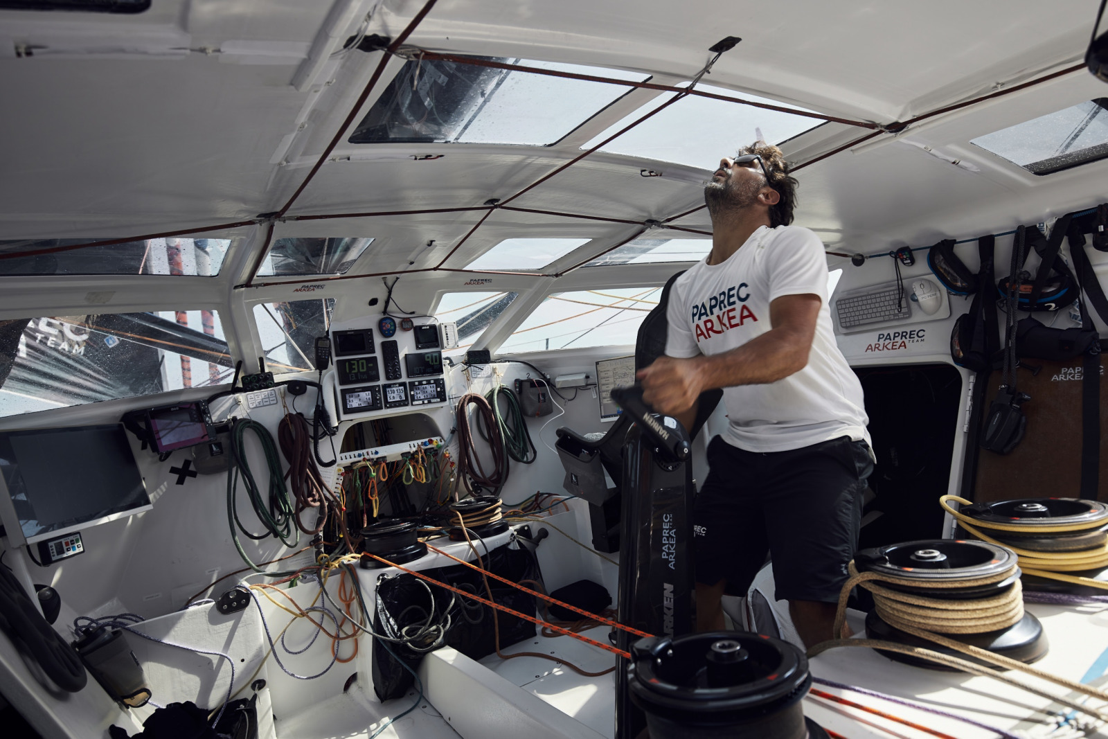 "Hier, ma journée a commencé tôt entre les orages, les éclairs qui tombaient dans l’océan puis le vent a forci rapidement. Je me suis petit à petit détaché de la flotte au moment du passage du waypoint pour pouvoir tester une configuration de voile différente. Ces premières heures de course étaient vraiment intenses heureusement en fin de journée j’ai réussi à faire un vrai repas et dormir par créneaux d’une heure. Je commence à trouver mon rythme et à imaginer la suite de la traversée malgré l’incertitude de la météo."