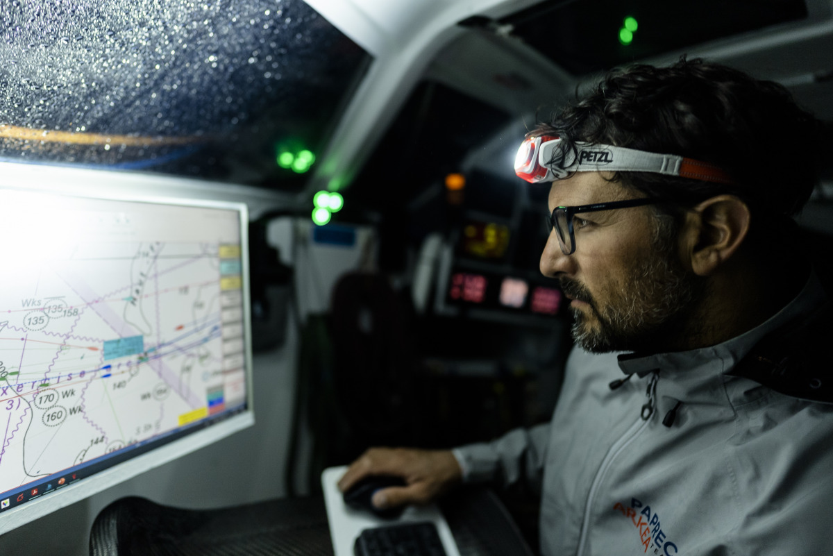 " C’est bien la première fois qu'en traversant l’Atlantique, on rattrape un front stationnaire : une nuit vraiment spéciale. Le vent est passé de 15 nœuds à 35 nœuds, c’était acrobatique, mais j’ai joué la prudence. En termes de changement de voiles, j’ai fait ça proprement, sans précipitation. Le tout était rythmé par le match et la victoire des joueurs du RC Vannes, que je suivais depuis le milieu de l’Atlantique. Autant vous dire que c’était une soirée sportive : jongler entre les manœuvres et suivre le score ! "