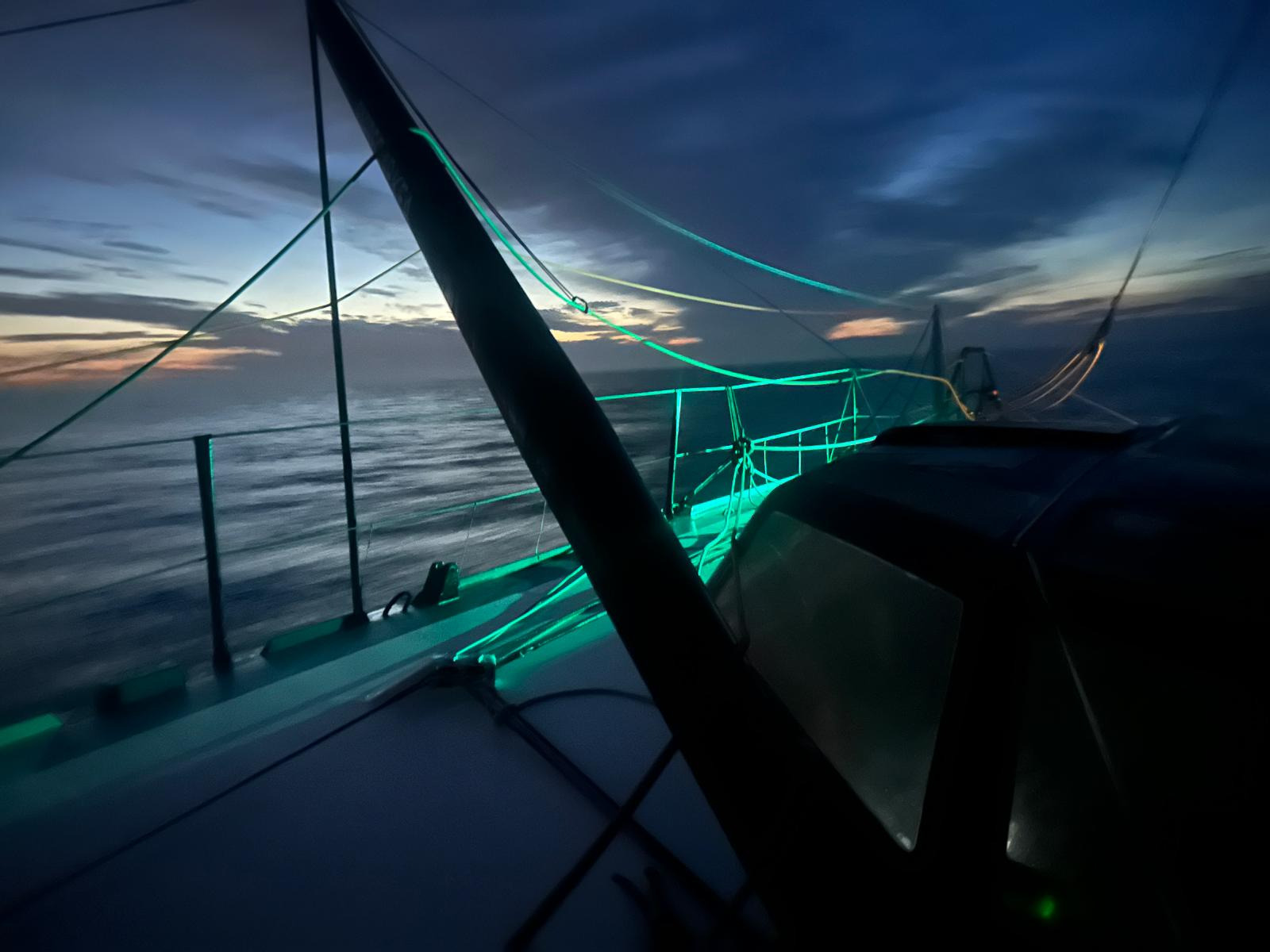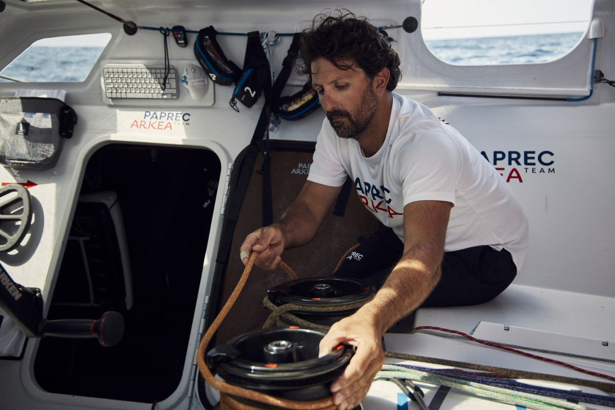 Il a donc fallu prendre son mal en patience en descendant vers le Sud jusqu’au way-point ‘Share the ocean’. La suite, c’est une remontée vers le Nord-Ouest particulièrement tonique. « On est sorti de la pétole et le vent est rentré très fort avec des orages et toujours plus de vent, raconte le skipper Paprec Arkéa. C’était vraiment intense : le bateau plantait, il a fallu rematosser le matériel, changer les voiles ». Le vent s’avère alors très instable en force et en direction, ce qui oblige à être toujours aux manettes. Une journée de haute vigilance, avec l’impossibilité de dormir. « Je n’ai pas trop eu le temps de me reposer », corrobore Yoann.