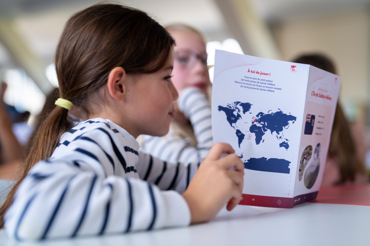 Une carte du monde géante représentant le parcours du Vendée Globe, un jeu des 7 familles avec les métiers présents dans l’équipe, un poster du bateau, des fiches thématiques sur les océans traversés... La petite valise cartonnée qui fait office de kit pédagogique a de quoi ravir les élèves et les équipes d’enseignants. À travers une approche ludique et un design soigné, ces contenus permettent d’étudier nombre d’aspects, de la géographie à la science en passant par les mathématiques et l’environnement.