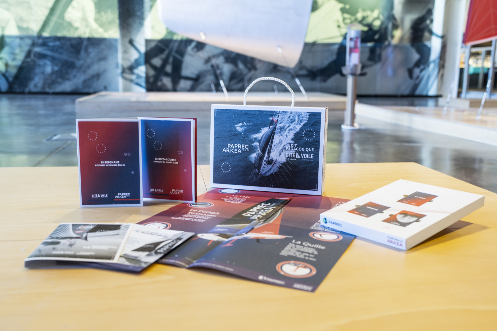 Pendant plusieurs semaines, les médiateurs de la Cité de la voile ont donc échangé pour mettre au point ce kit à destination des élèves de primaire. « L’objectif du kit pédagogique est d’expliquer la course au large, et de l’utiliser pour mettre en lumière les enjeux océaniques, et d’aborder les nombreux sujets techniques, scientifiques et humains qu’elle soulève, précise Fabien Le Gal. Avec la course au large, le champ des possibles est infini !» « Ça nous permet de transmettre notre passion au-delà des enjeux sportifs », acquiesce Romain Ménard, « le travail avec les jeunes générations est une habitude chez Paprec et au Crédit Mutuel Arkéa, qui s’adressent régulièrement aux plus jeunes à travers de nombreuses initiatives. Ainsi, chez Paprec, les élèves sont régulièrement accueillis dans les espaces pédagogiques que le leader du recyclage a installé au sein de ses centres de tri alors que le Crédit Mutuel Arkéa accueille chaque année plus de 1000 étudiants en alternance et ouvre ses portes pour accueillir des stagiaires, y compris en classe de 3ème ».