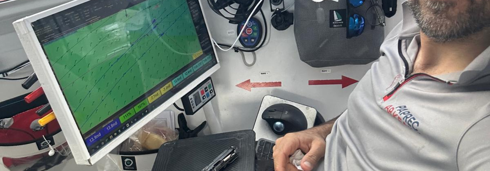 « J’ai eu une nuit assez active entre vendredi et samedi, à faire avancer le bateau à chaque risée. J’étais content de réussir à accrocher mes trois compagnons (Charlie sur MACIF, Jérémie sur Charal, et Louis sur Bureau Vallée). Mais là ils s’échappent un peu, bizarrement ils touchent plus de vent que moi. J’espère réussir à me reposer avant que la température augmente. »