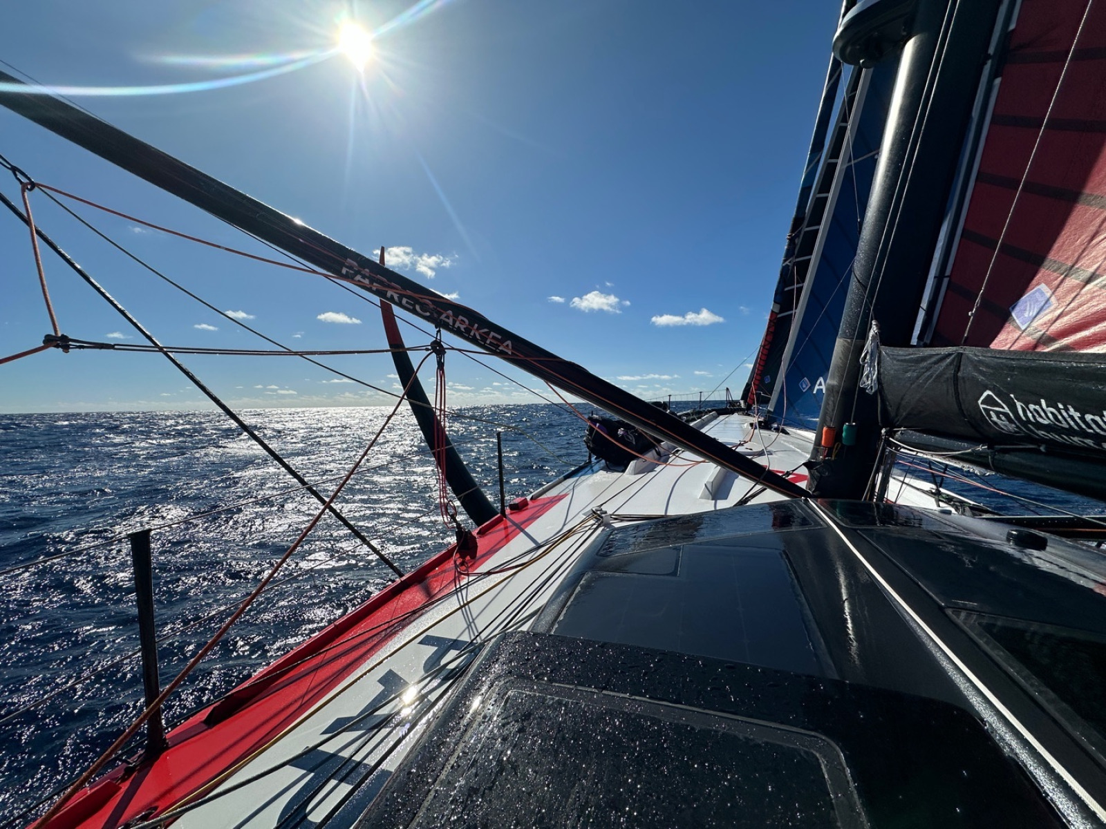 « Maxime est déjà rentré malheureusement. Je lui ai envoyé un message et je lui souhaite bien sûr un très bon rétablissement. De son côté, Louis (Burton) a entrepris des réparations (il avait des fissures sur le pont de son bateau). Il a vraiment beaucoup de courage, ce sont des travaux compliqués à faire. En plus, il a continué à avancer. J’espère que ça va tenir et que Louis va pouvoir continuer ! »