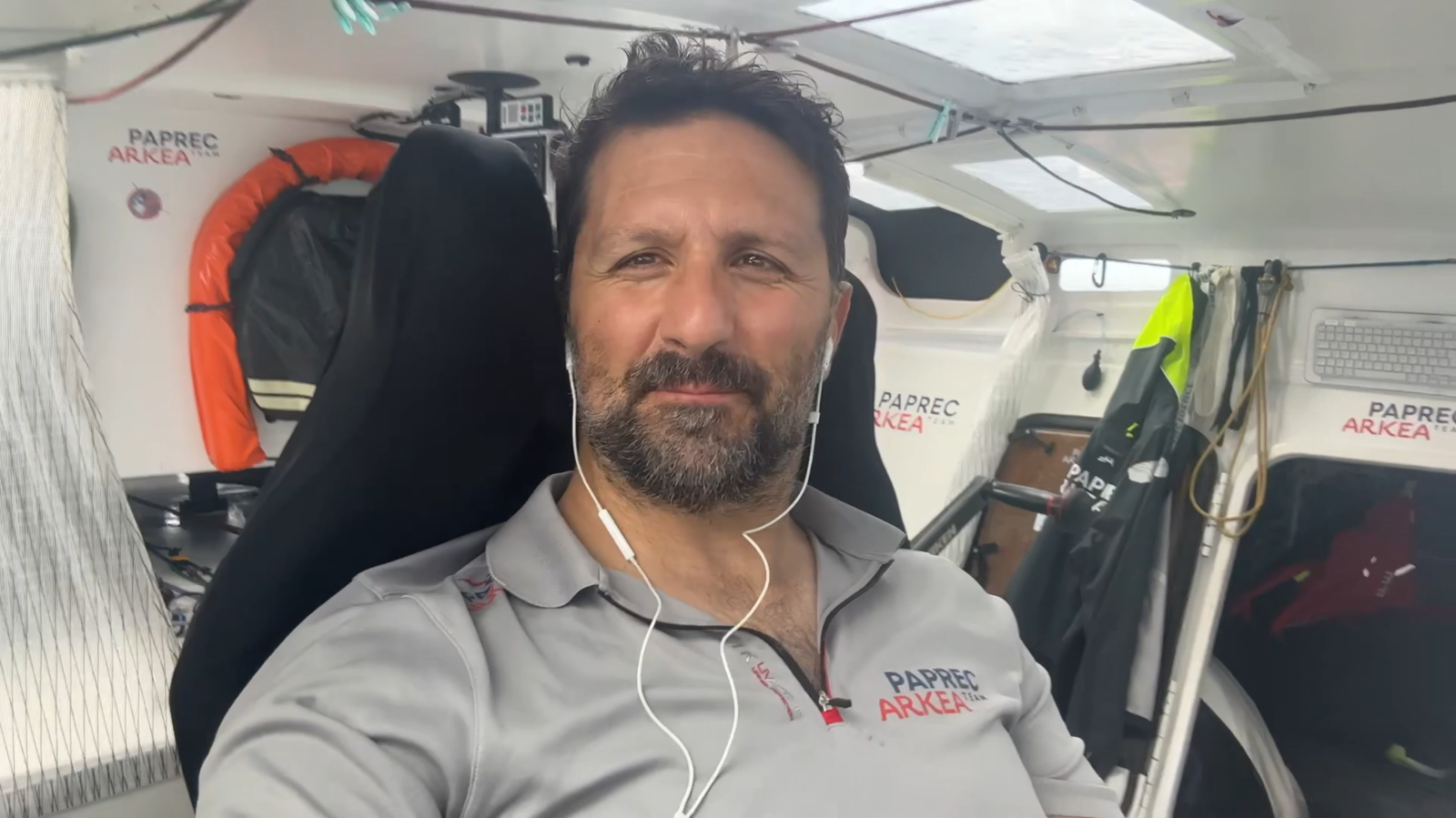 C’est un sentiment ambigu que Yoann a connu ce lundi : à la fois un regard admiratif sur son nouveau record de distance parcouru en 24h et en même temps la fatigue d’avoir vécu une nuit à haute vitesse qui ne souffrait d’aucune erreur de pilotage. Le record d’abord : avant ce Vendée Globe le record était à 540 milles nautiques, Paprec Arkéa a porté la marque à 579 milles, soit 39 milles ajoutés, où +7,2% ! Une moyenne de plus de 24 nœuds. Ensuite, les conditions : les hautes vitesses c’est toujours du stress, alors imaginez-vous quand c’est de nuit ! Yoann partageait son sentiment après cette folle cavalcade nocturne : « Wah c'est dur ! Tout d'abord je n'ai pas bien compris la force du vent, il devait y avoir 23 nœuds sans rafale, je me suis retrouvé dans 30/33 nœuds toute la nuit. Au début je me suis dit que ça n’allait pas durer alors j’ai gardé la voile prévue pour 23 nœuds, mais quasi impossible de dormir car j’étais un peu en surchauffe avec cette voile. J'ai donc attendu les premières lueurs du jour pour attaquer la manœuvre : changement de voile, déplacement des voiles pour améliorer l’assiette du bateau, puis rangement de tout le bazar. 1h15 de manœuvre. Il est possible que je réussisse à dormir après ça ;-). Pas de casse à signaler c'est presque le principal car il y avait moyen de faire des bêtises. »