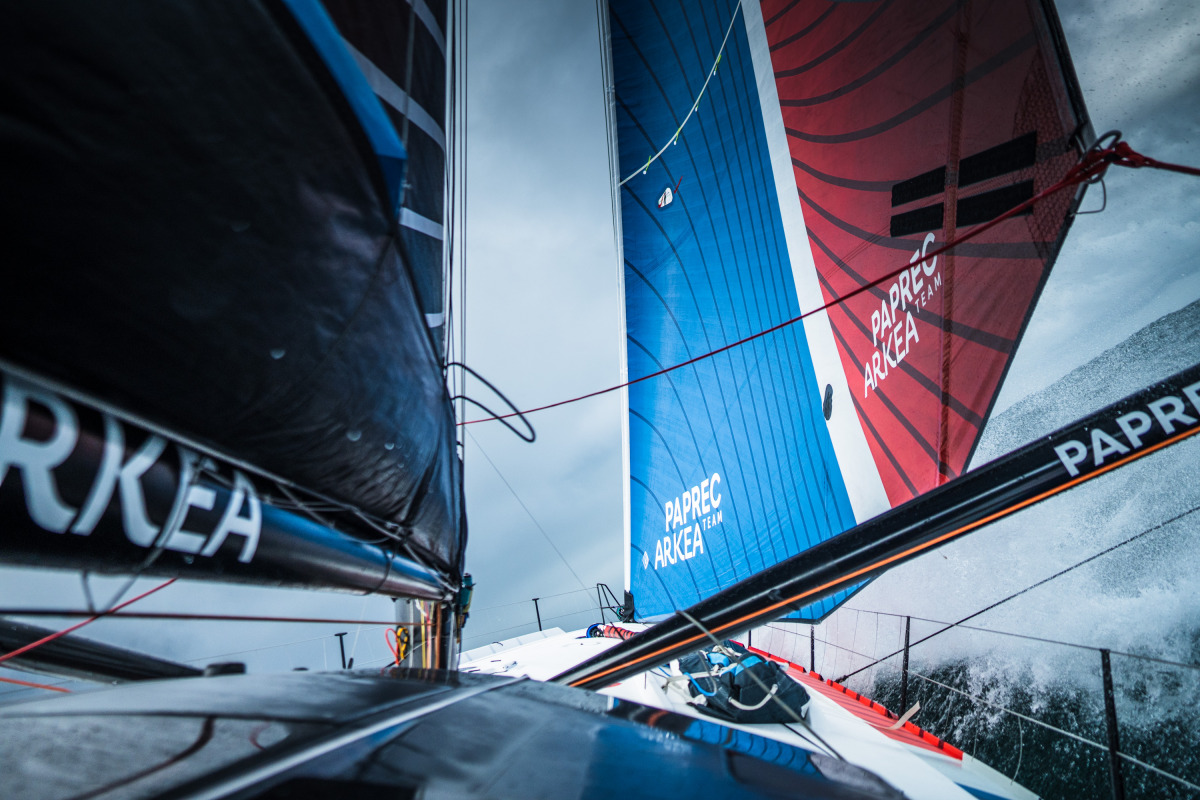 « Dans le scénario actuel, au nord, je vais avoir des conditions plus difficiles qu’eux dans le sud. Par contre, là où je suis, j’ai le choix. Si c’est trop fort, je freine, j’arrête le bateau 5 à 6 heures. Ou alors, je me décale encore plus au nord dans du vent plus faible. Eux, au sud, ils n’ont plus le choix, ils sont contraints par la météo d’avancer à un rythme assez élevé. Une casse mécanique maintenant, qui les obligerait à s’arrêter, ça serait problématique car ils se feraient rattraper par du vent fort. Moi, si je ralentis, mes conditions de navigation s’améliorent rapidement. Eux, s’ils ralentissent, les conditions se dégradent.»