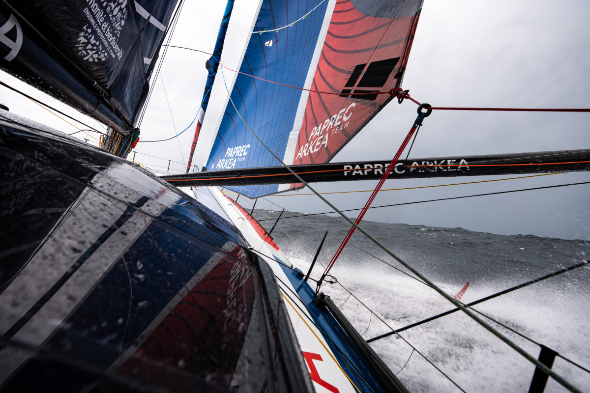 Souvenez-vous, Yoann est entré dans les mers du Sud avec Charlie Dalin et Sébastien Simon, juste devant une tempête qui s’annonçait redoutable. Yoann choisissait alors de surfer les bords de cette dépression par la voie Nord, pour garder la possibilité d’en sortir et de mettre son bateau à l’abri le cas échéant. Charlie et Sébastien, eux, ont filé plein Sud à bride abattue et prirent une avance considérable sur lui et le reste de la flotte. Une avance qui pouvait donner à regretter dans un premier temps le choix de l’option nord – d’autant plus que Yoann n’a pas été épargné par la tempête ! Mais si Charlie a réussi à mener le train d’enfer nécessaire pour rester en avant de la solide dépression, Sébastien Simon, lui, s’est fait rattraper par les éléments déchaînés, le soumettant, lui et son bateau à rude épreuve. C’est alors qu’il prenait un peu de repos samedi que son foil tribord s’est cassé net. Une avarie majeure qui va rebattre les cartes du trio de tête. Situation donc, à l’entrée de cette cinquième semaine de course et à l’approche de l’Australie : l’avance de Charlie Dalin est considérable (700 kilomètres quand même !) mais elle n’est pas insurmontable car la route est encore longue. La deuxième place est à portée mais les marins qui talonnent Yoann (Thomas Ruyant à 350 kilomètres, Jérémie Beyou, Nicolas Lunven, Sam Goodchild…) sont furieusement déterminés à revenir sur ce trio de tête. Tous ont bifurqué plein Sud pour contourner l’antarctique au plus près de la zone d’exclusion et devraient se retrouver dans le même système météo dans les prochains jours, ouvrant le champ des possibles. Nous, nous souhaitons à notre skipper favori, Yoann, de continuer à suivre sa propre boussole et à naviguer en « bon marin » !
