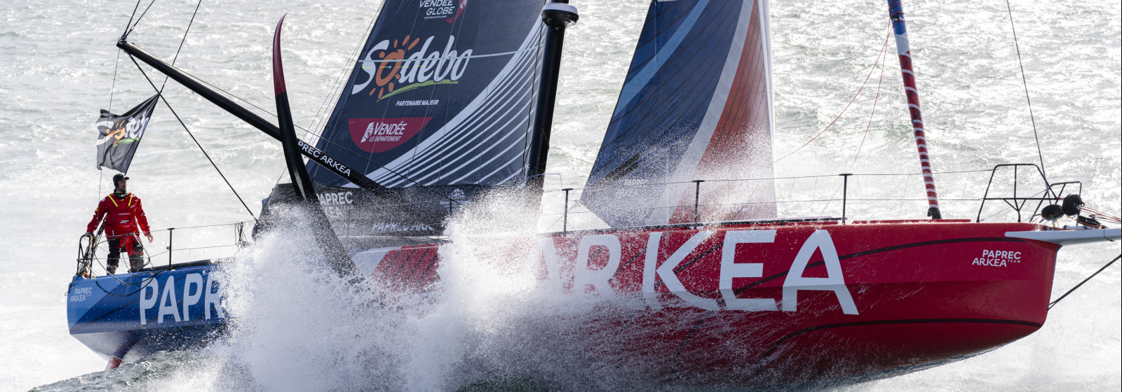 Les deux skippers devraient, chacun leur tour, ralentir dans la nuit en se rapprochant des côtes, par le premier effet de l’anticyclone. C’est ce système météo qui dicte leur trajectoire d’arrivée par la pointe bretonne, les obligeant ensuite à longer la côte pour arriver en Vendée.