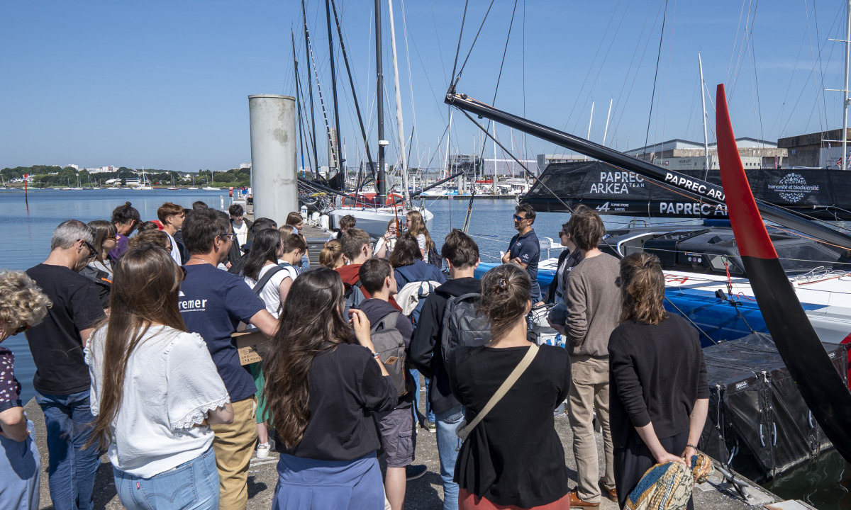 Grâce au programme "Adopt A Float", cette aventure a été suivie de près par une classe de collégiens, à Hennebont, qui sont venus à Lorient ce lundi pour rencontrer Yoann. L’occasion de procéder avec l’Ifremer à un prélèvement de l’eau dans laquelle se trouve l’IMOCA Paprec Arkéa ! Échantillons que les scientifiques en herbe ont pu analyser attentivement.