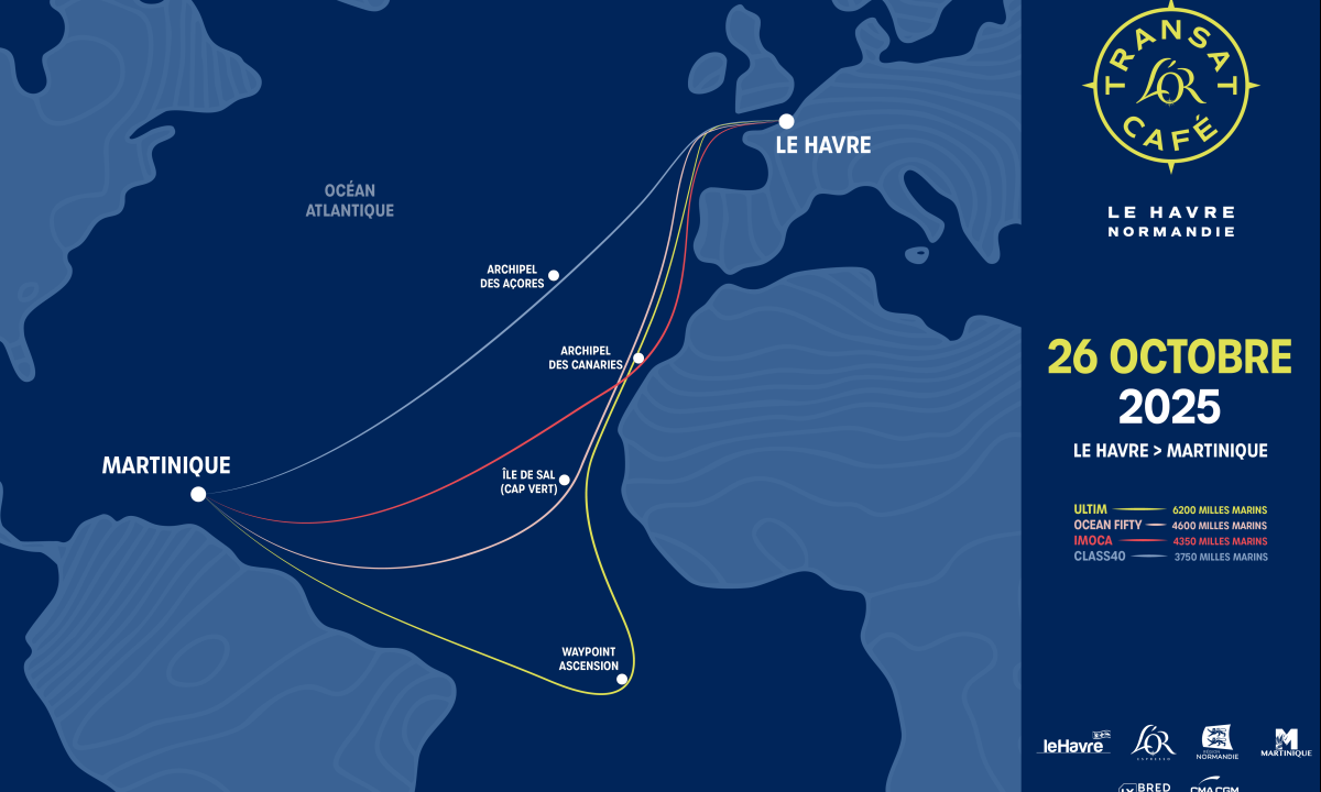 Après avoir quitté les rives du Havre et remonter vers un waypoint un peu plus au Nord, tous mettront le cap vers l’ouest. Il faudra traverser la Manche, résister aux courants, veiller au passage de front et au trafic. Après avoir dépassé la Normandie et la Bretagne, place au golfe de Gascogne puis à une descente jusqu’aux Canaries. Après avoir laissé l’archipel à tribord, les duos devront faire un choix : une route plus nord afin de se rapprocher des dépressions ou plus sud et voguer grâce aux alizés. L’approche des Caraïbes pourra rabattre les cartes avec les grains, des zones sans vent et la proximité des côtes. À l’arrivée, les skippers aborderont l’île de la Martinique par le Sud. Ils pourront profiter du rocher du Diamant avant leur arrivée en baie de Fort-de-France, offrant la garantie d’images à couper le souffle juste avant l’arrivée.