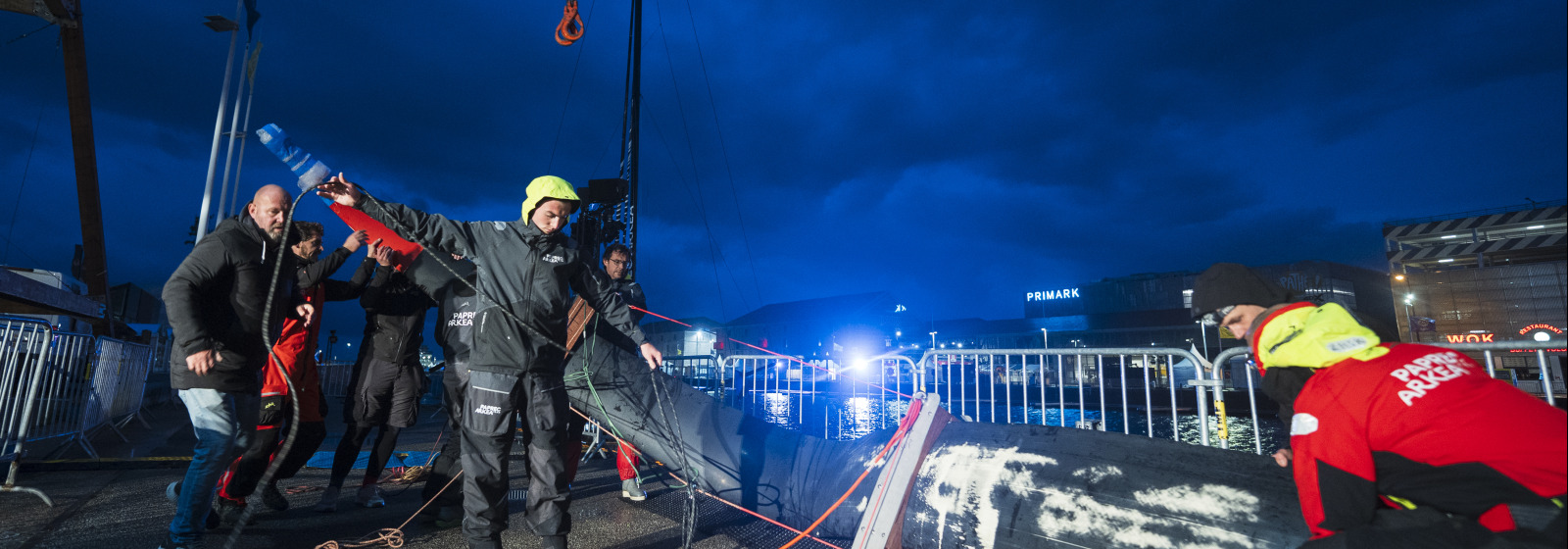 S’ils avaient déjà fait preuve de leur maîtrise lors du chantier express de l’entre-deux courses, le team Paprec Arkéa a de nouveau démontré d’une efficacité et d’une rigueur à toute épreuve : en une nuit, les hommes et femmes de l’équipe technique ont ainsi rapatrié le matériel nécessaire aux réparations depuis Lorient, remplacé l’outrigger et le foil endommagés, et rendu l’IMOCA rouge et bleu apte à reprendre la mer en un temps record.