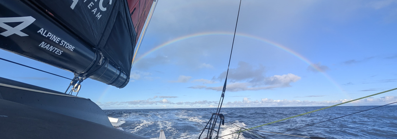 Corentin : « Ce qui nous attend, c’est du solide : 35, 40 nœuds, avec un virement dans le fond de la dépression – on espère ne pas dépasser les 45 nœuds. »